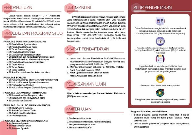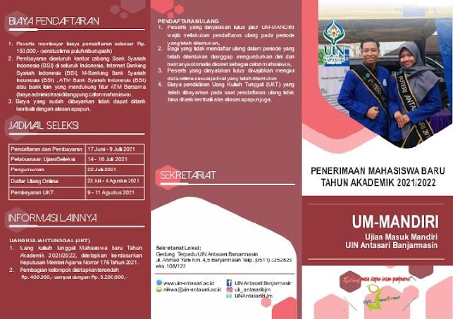 Setelah membaca informasi yang ada di brosur pasti adik-adik sangat berminat untuk berkuliah di UIN ANTASARI BANJARMASIN, makanya jangan sampai ketinggalan !!!